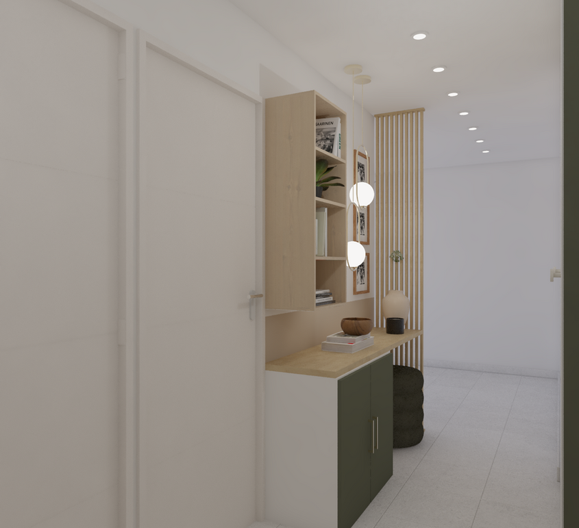 Pour le projet TERRASSE, les clients souhaitaient rénover leur entrée et le couloir attenant afin de créer un espace à la fois chaleureux, pratique et esthétique. L’entrée actuelle était jugée trop blanche et froide, avec une ambiance clinique, et l’objectif était de provoquer un véritable effet “wahou” dès l’arrivée, tout en apportant un rangement fonctionnel adapté à leur quotidien familial.