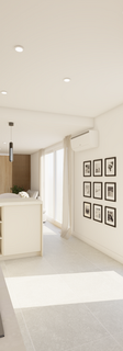 Un coin bar convivial a également été imaginé pour les petits-déjeuners en famille et les moments de réception. L’ambiance de la cuisine repose sur des tons clairs et épurés, relevés par des touches chaleureuses et modernes, en parfaite harmonie avec le reste de la pièce. Un éventuel futur changement du sol (gris actuel) est prévu pour renforcer cette sensation de confort et de douceur.